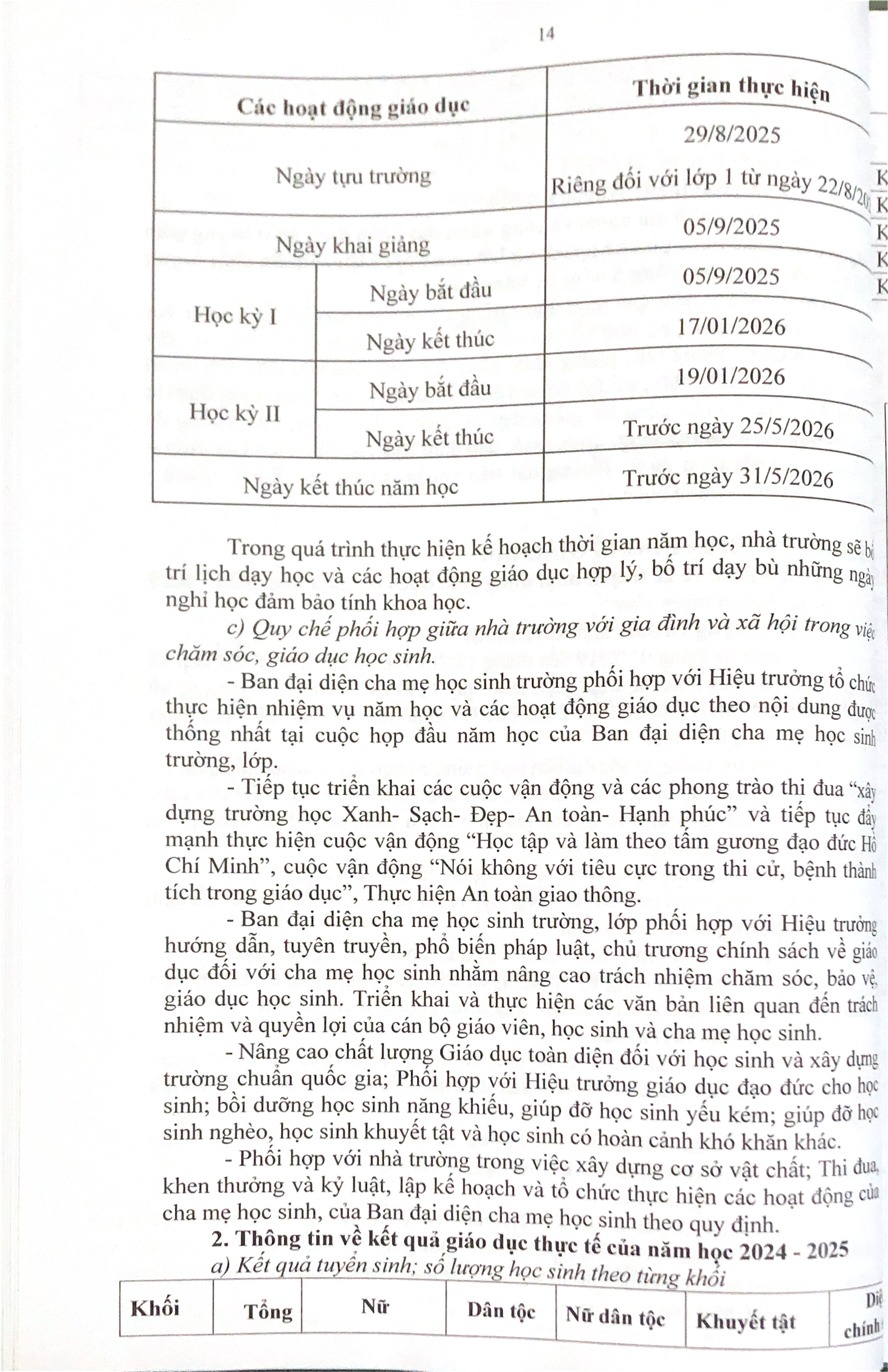 KHUNG KẾ HOẠCH THỜI GIAN NĂM HỌC 2025 – 2026
