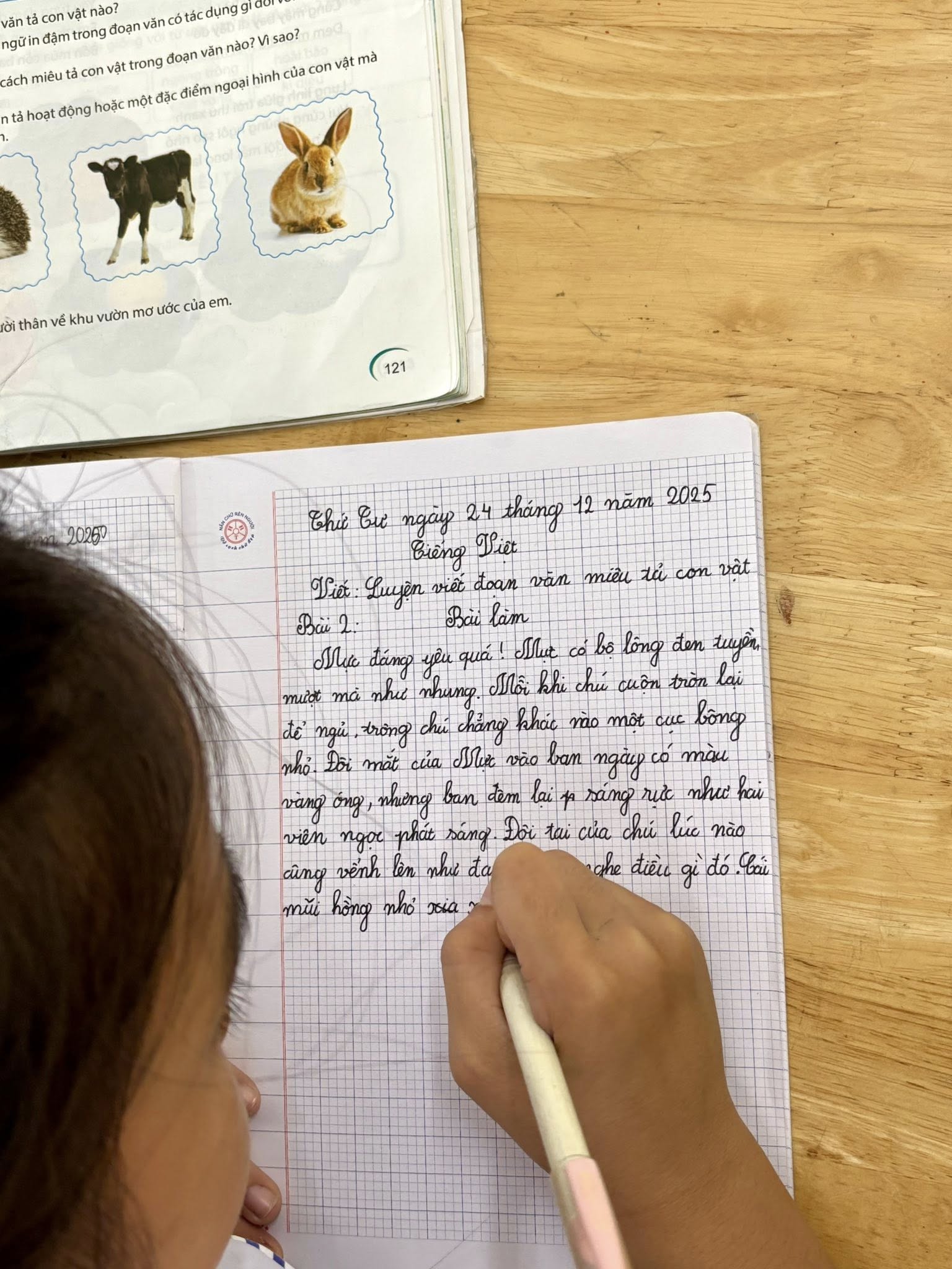 Tại buổi sinh hoạt, cán bộ, giáo viên đã dự tiết dạy : “Luyện viết đoạn văn miêu tả con vật “ – lớp 4, do cô giáo Mai Khánh Hoà thực hiện .