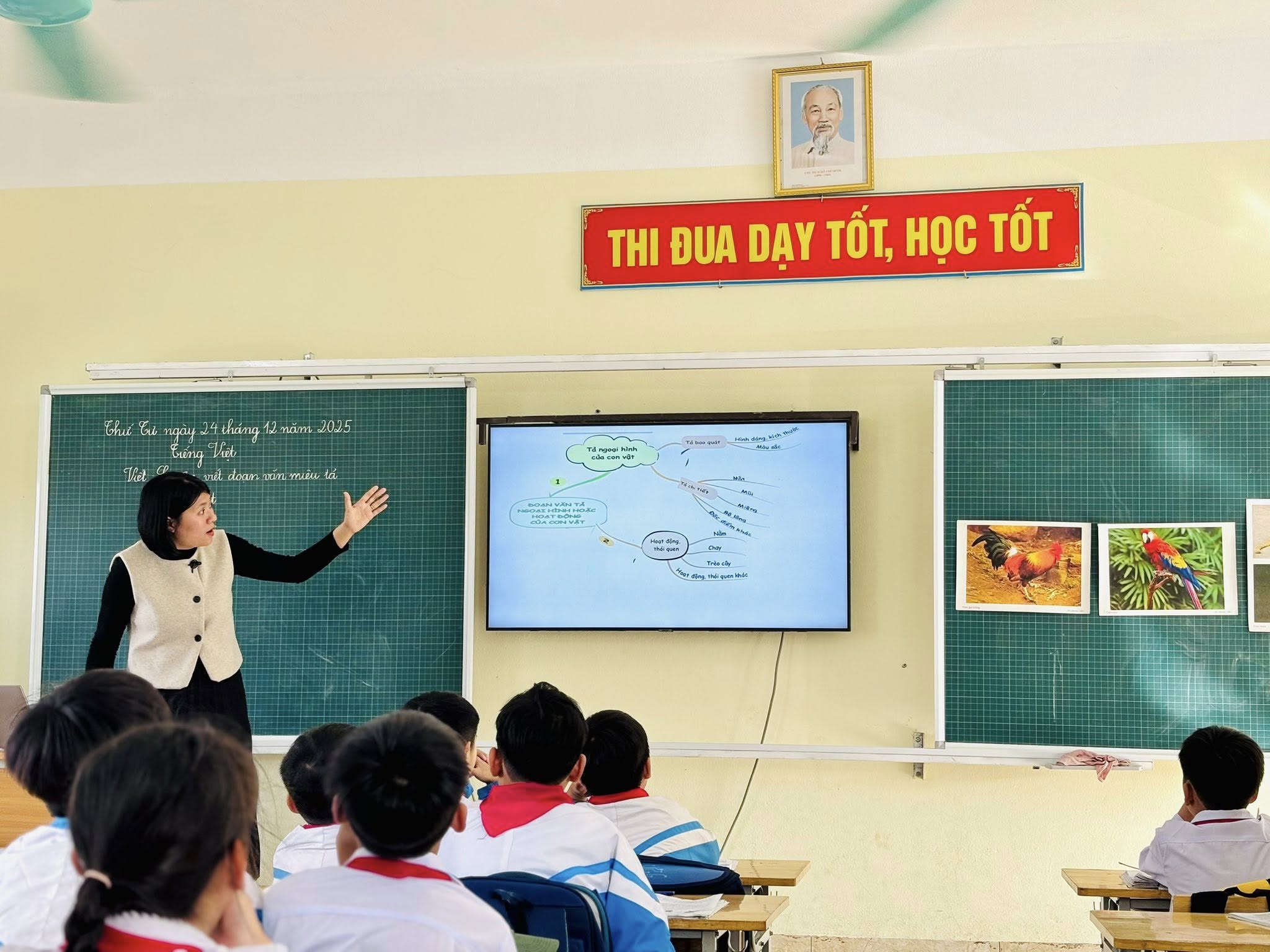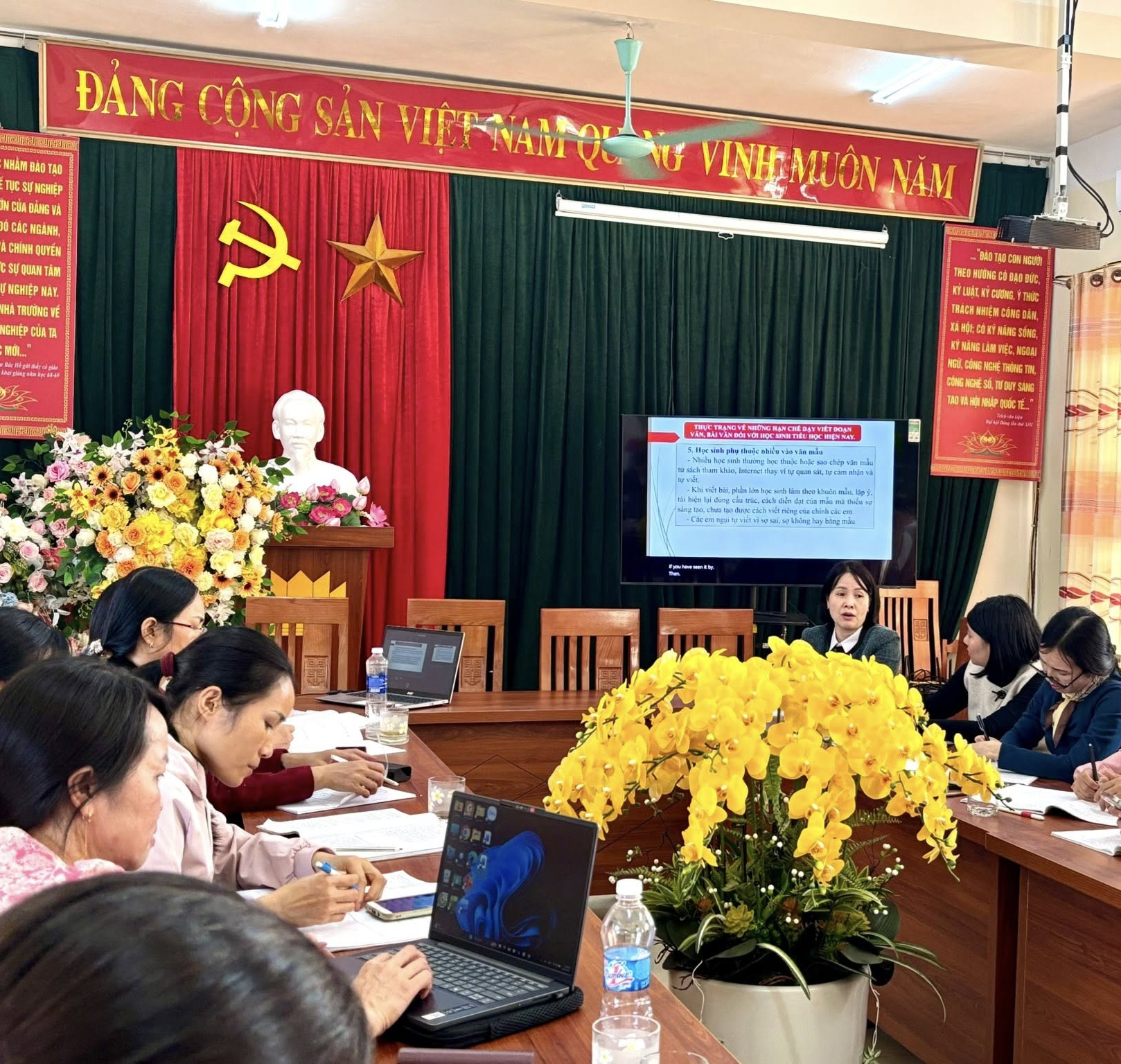 Thực hiện kế hoạch số 73/KH-SGDĐT ngày 04/12/2025 của Sở GDĐT tỉnh Ninh Bình về việc Bồi dưỡng cán bộ quản lý, giáo viên nâng cao năng lực dạy học môn Tiếng Việt cấp Tiểu học (nội dung dạy viết đoạn văn, bài văn). Chiều ngày 24/12/2025, Trường TH Phạm Thận Duật – xã Yên Mạc tổ chức sinh hoạt chuyên môn với nội dung: “Bồi dưỡng cán bộ quản lý, giáo viên các quy trình dạy viết đoạn văn, bài văn cho HS từ lớp 2 đến lớp 5 nhằm nâng cao năng lực viết văn cho HS”.