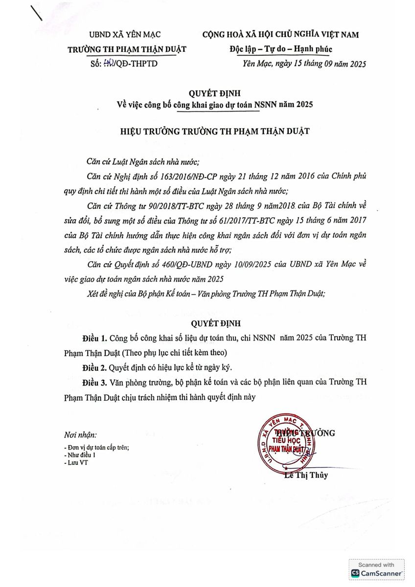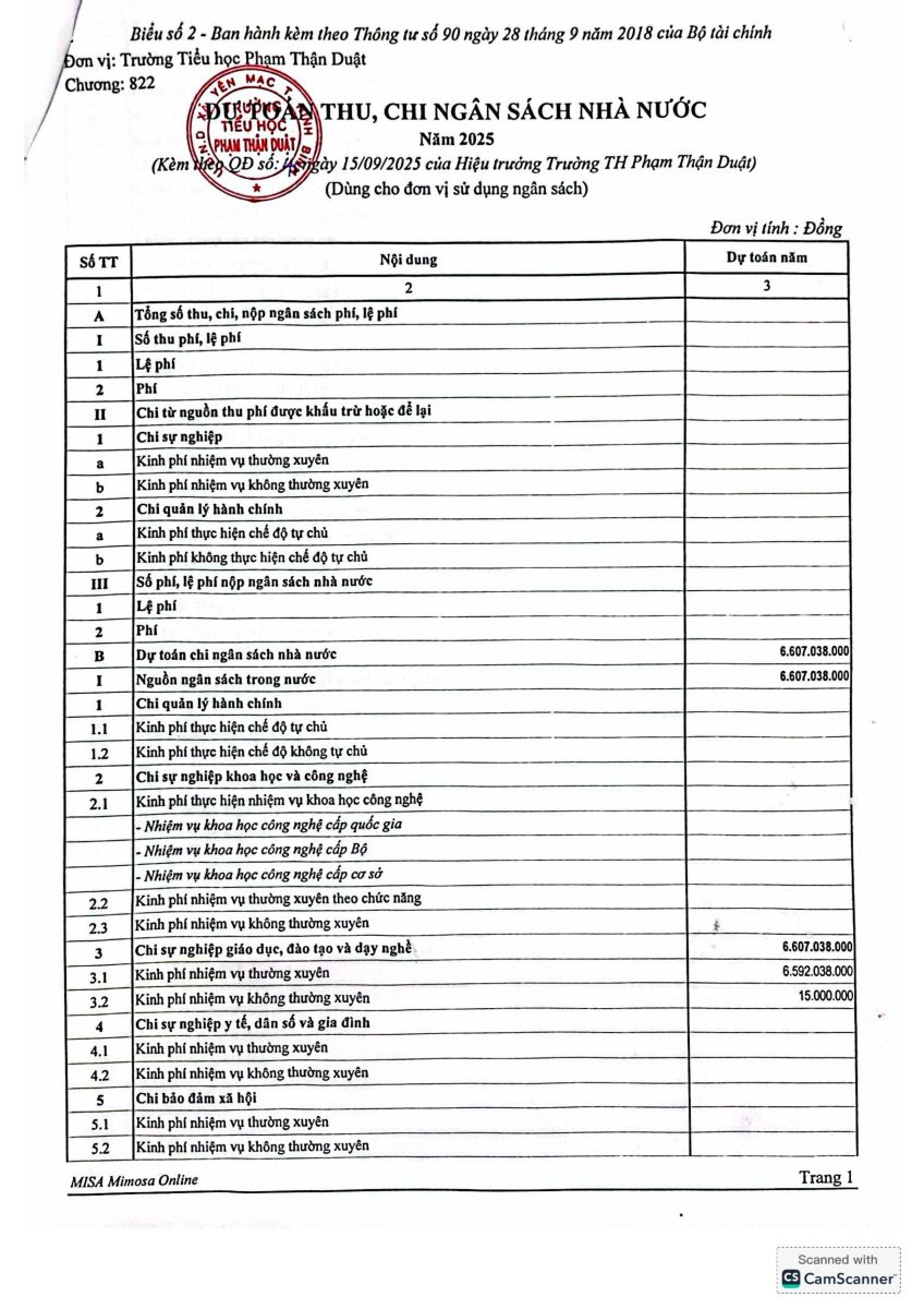 CÔNG BỐ CÔNG KHAI DỰ TOÁN NSNN NĂM 2025