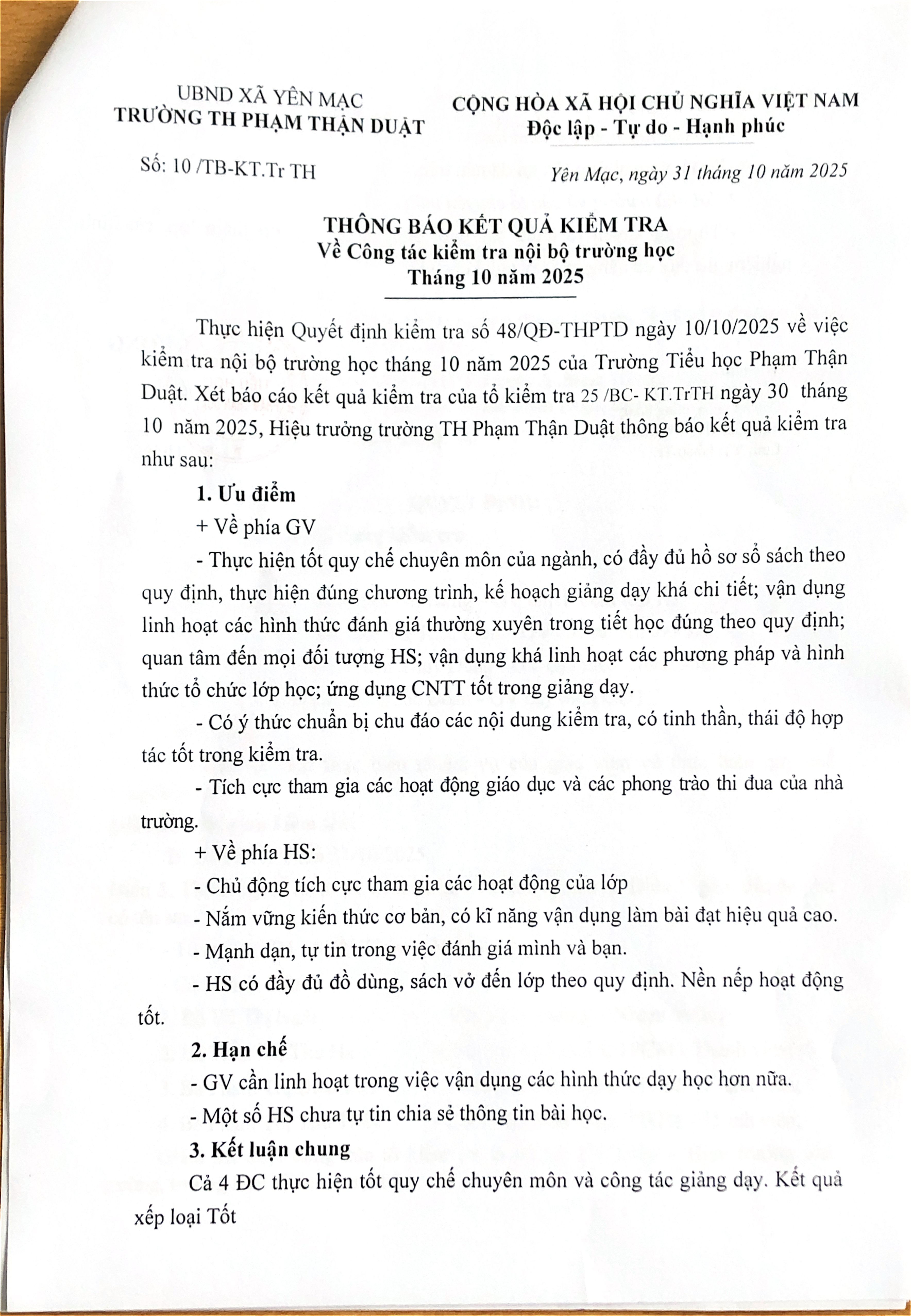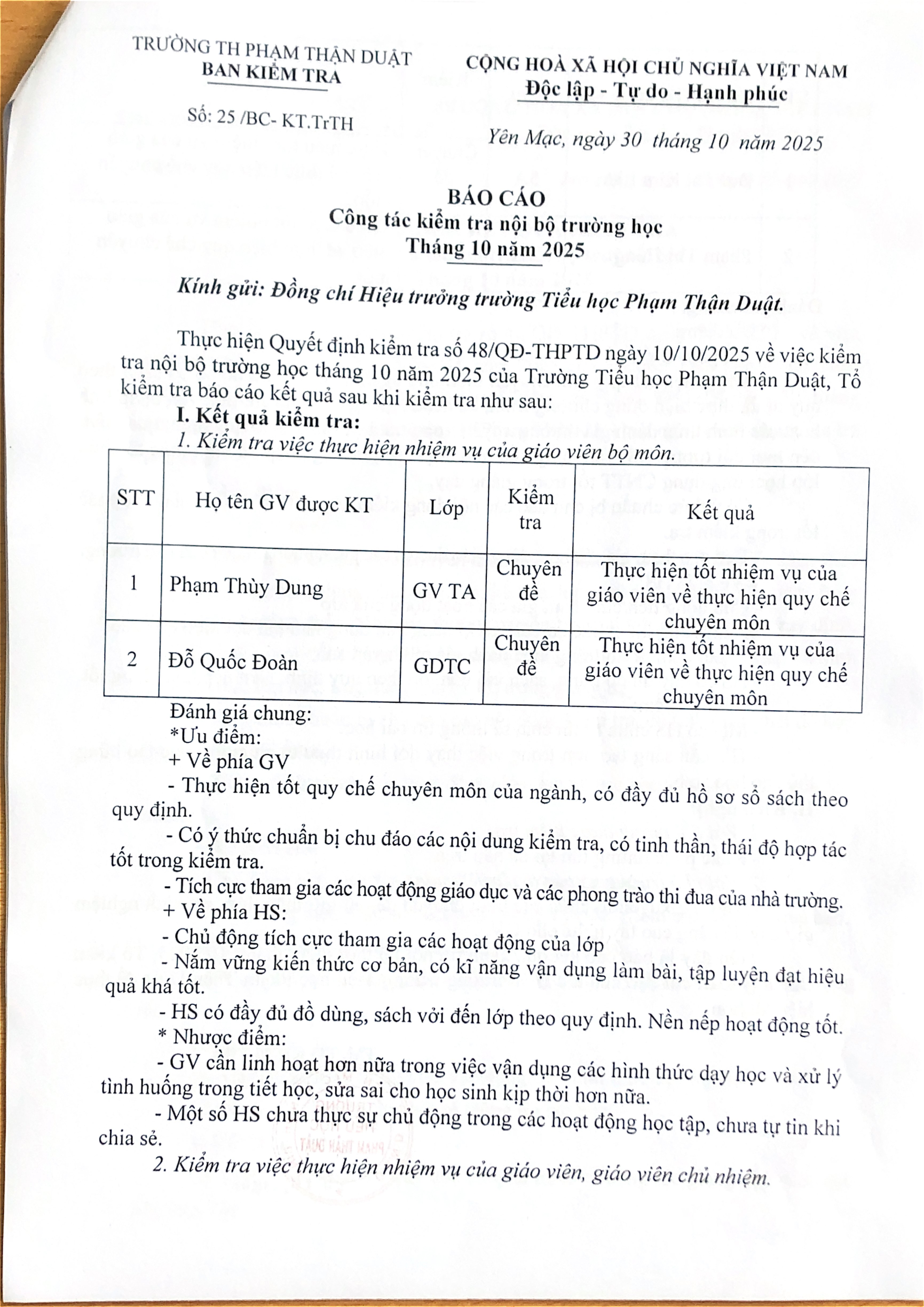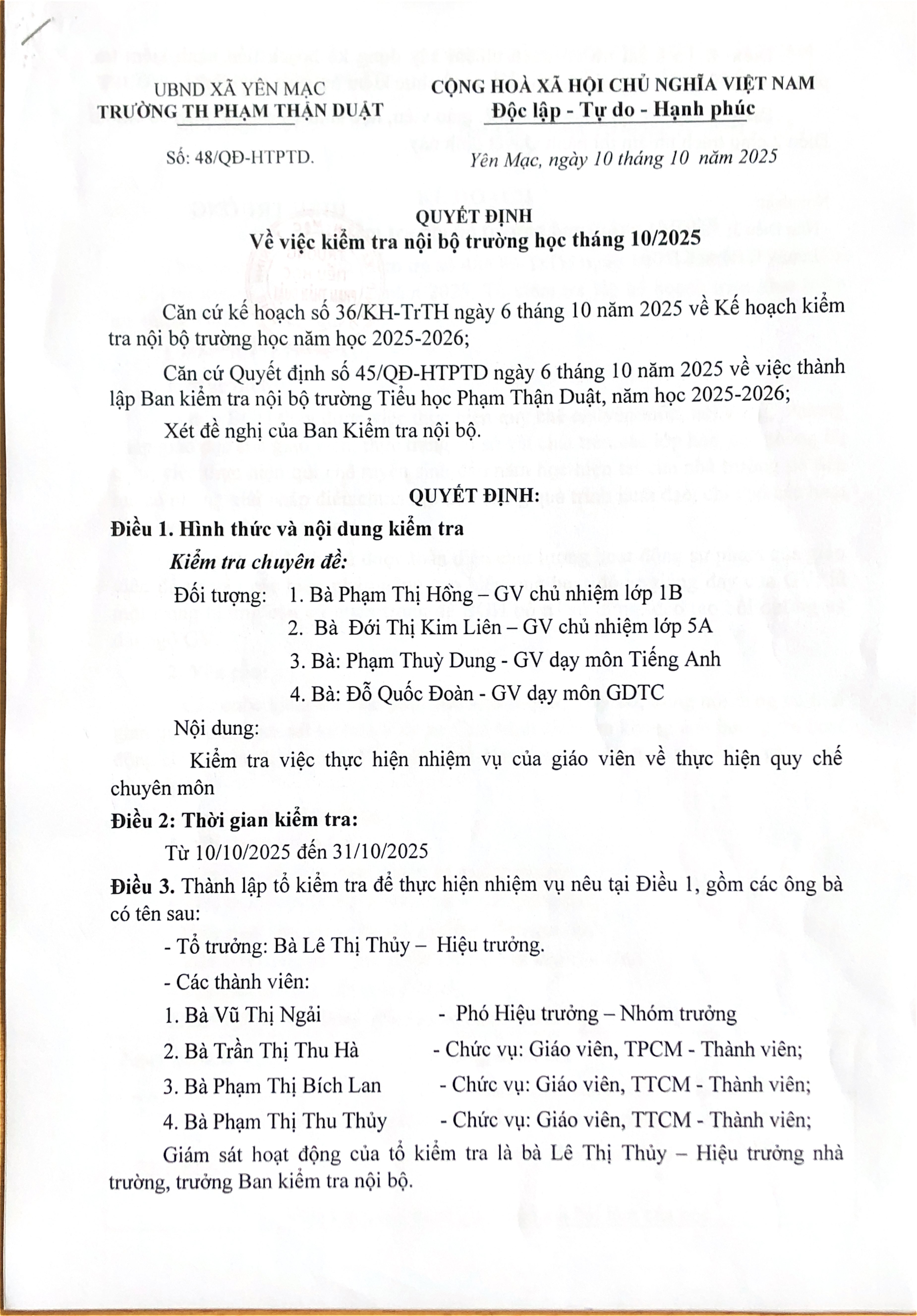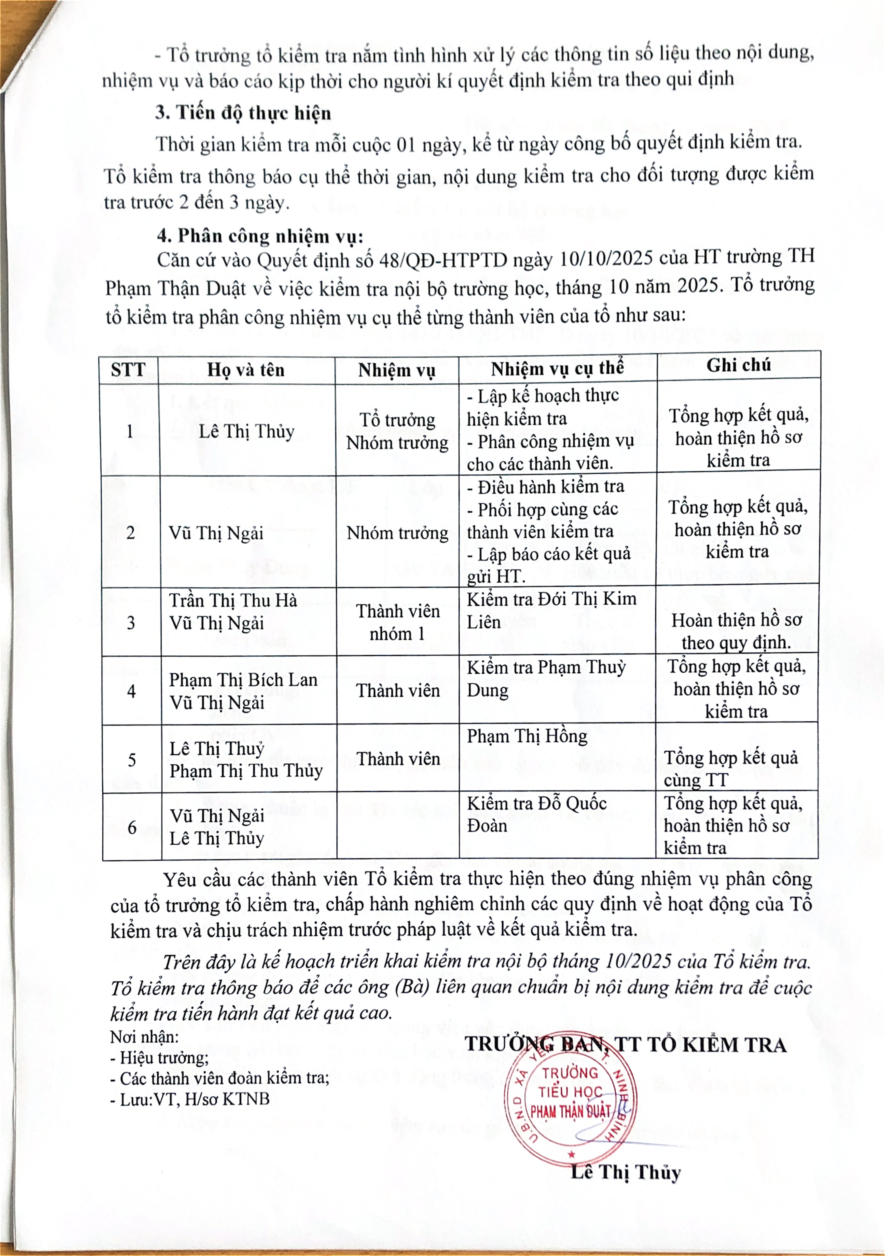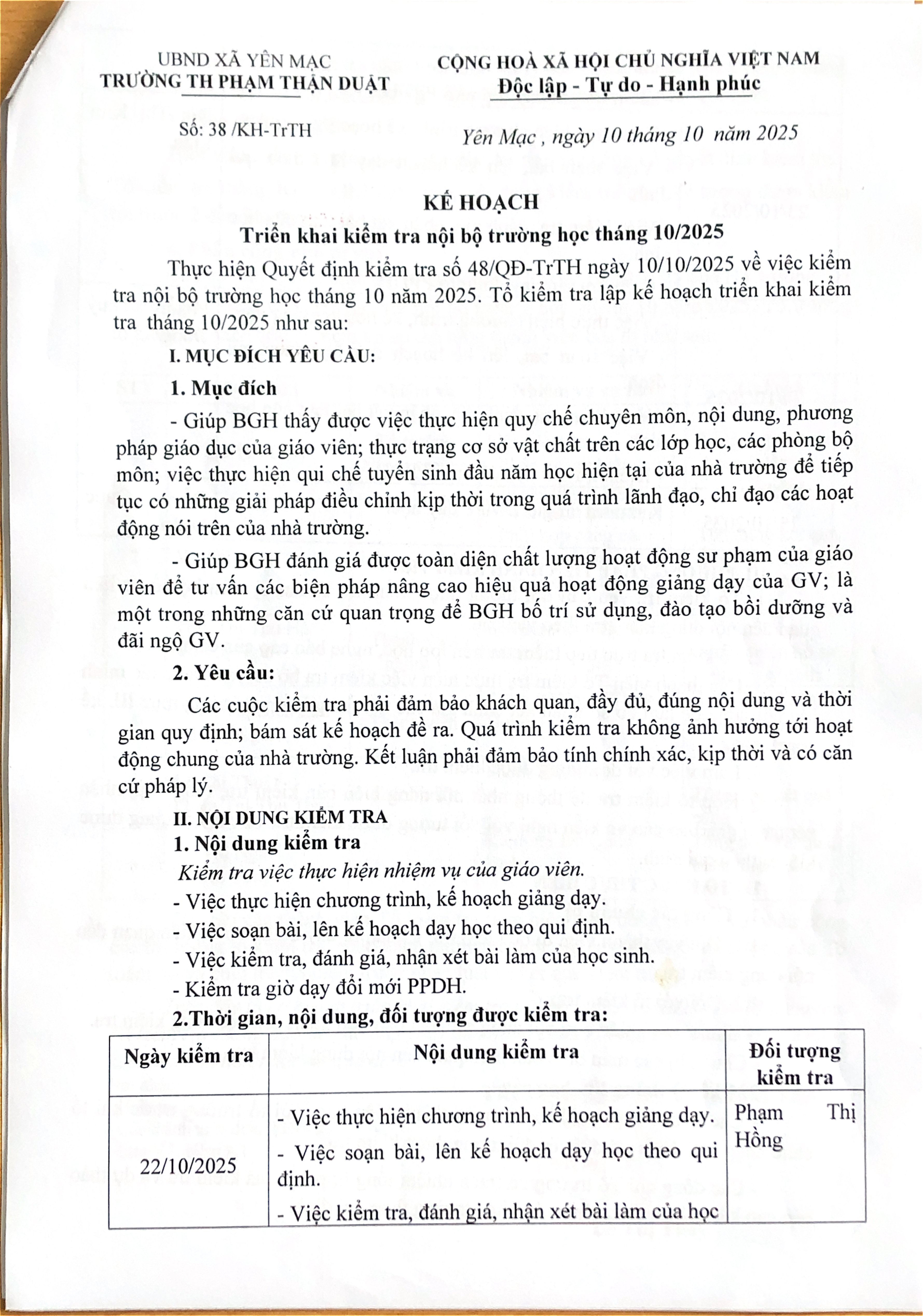 KIỂM TRA NỘI BỘ THÁNG 10/2025